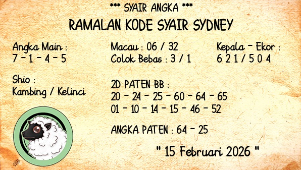 SYAIR PREDIKSI KELUARAN SYDNEY, 15-Feb-2026